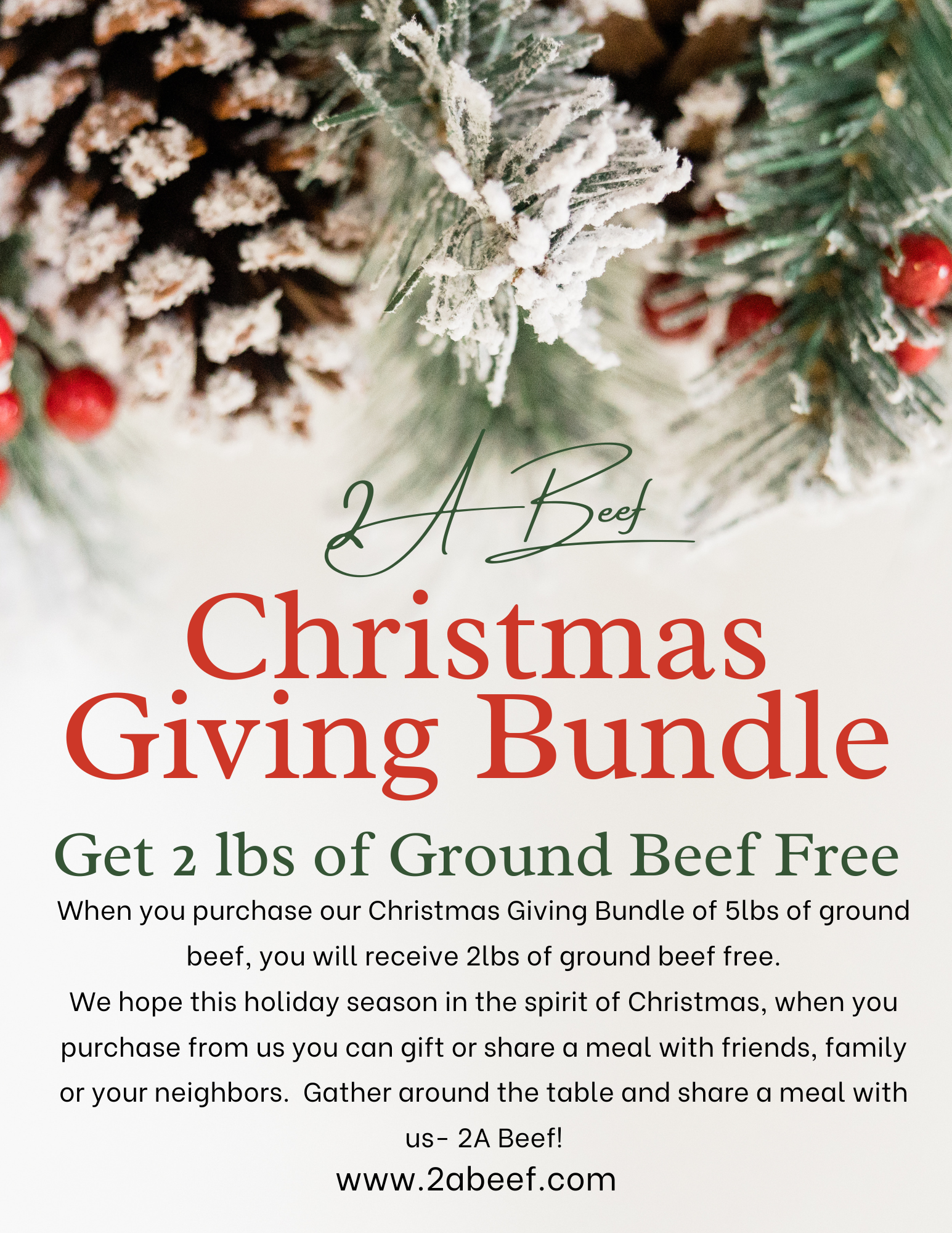 Our Christmas Giving Bundle is 5lbs of ground beef.